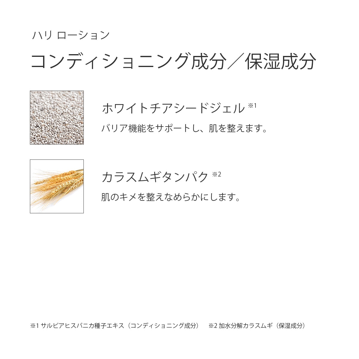 コンディショニング成分:※1 サルビアヒスパニカ種子エキス 保湿成分:※2 加水分解カラスムギ